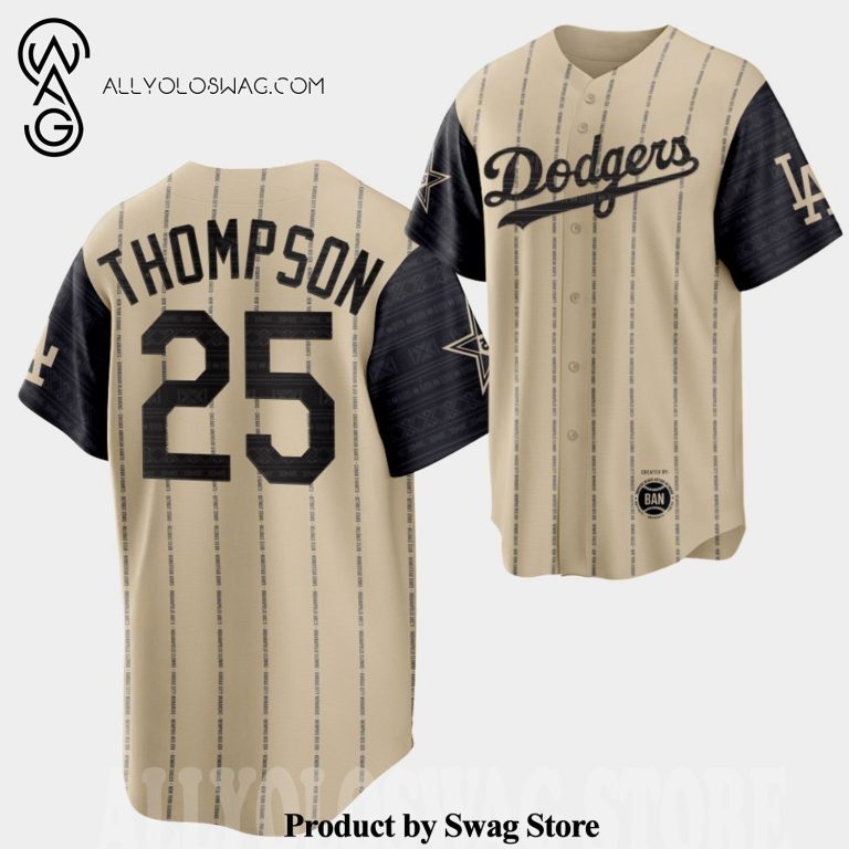 Some details about our product [Top-selling] 2022-23 Black Heritage Night Los Angeles Dodgers Trayce Thompson 25 Gold 3D Unisex Jersey