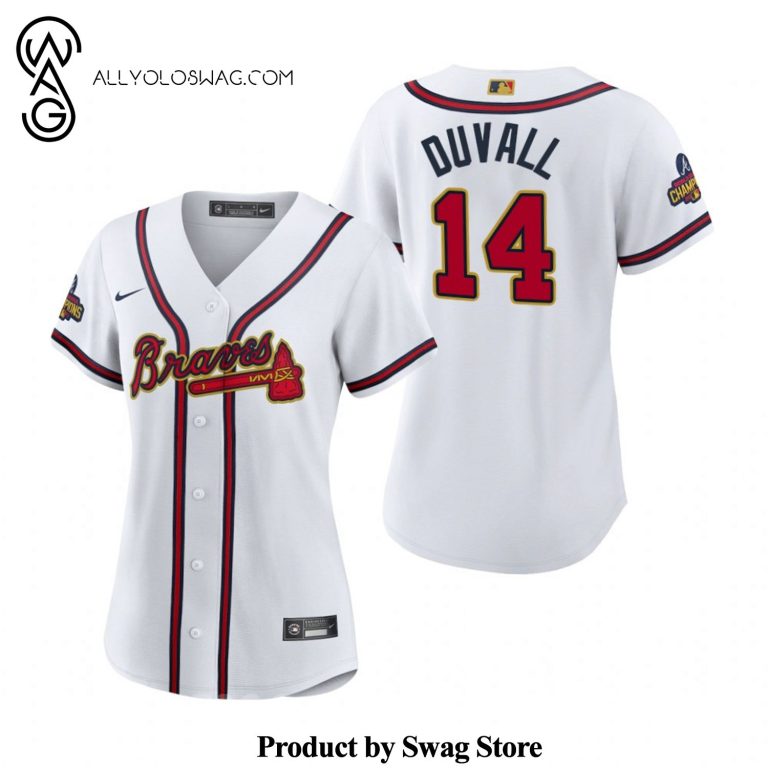 Some details about our product [Top-selling] Adam Duvall 14 Atlanta Braves White 2022-23 Gold Program 3D Unisex Jersey