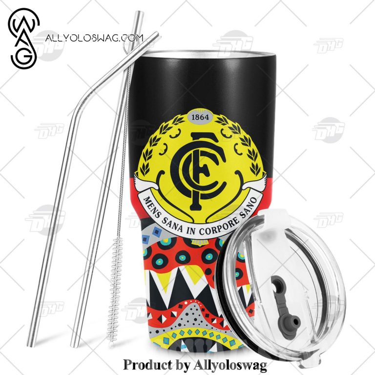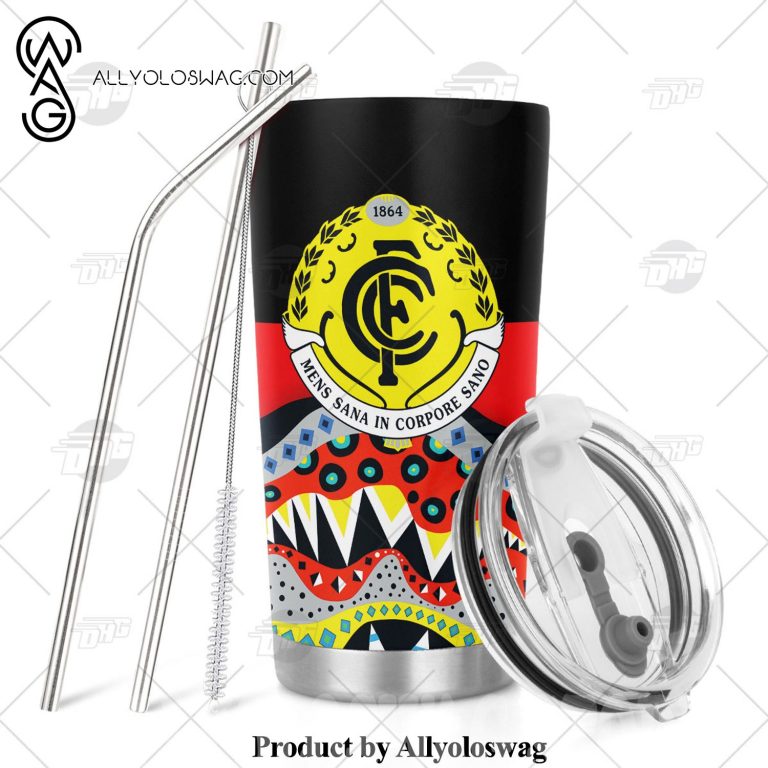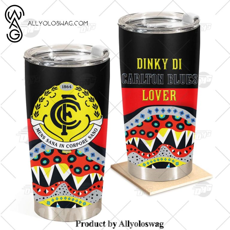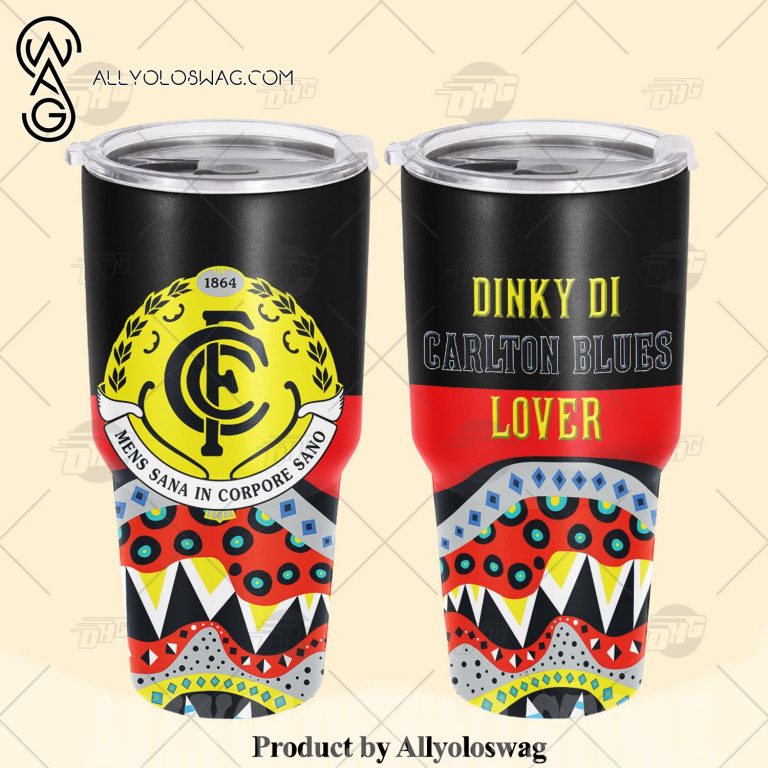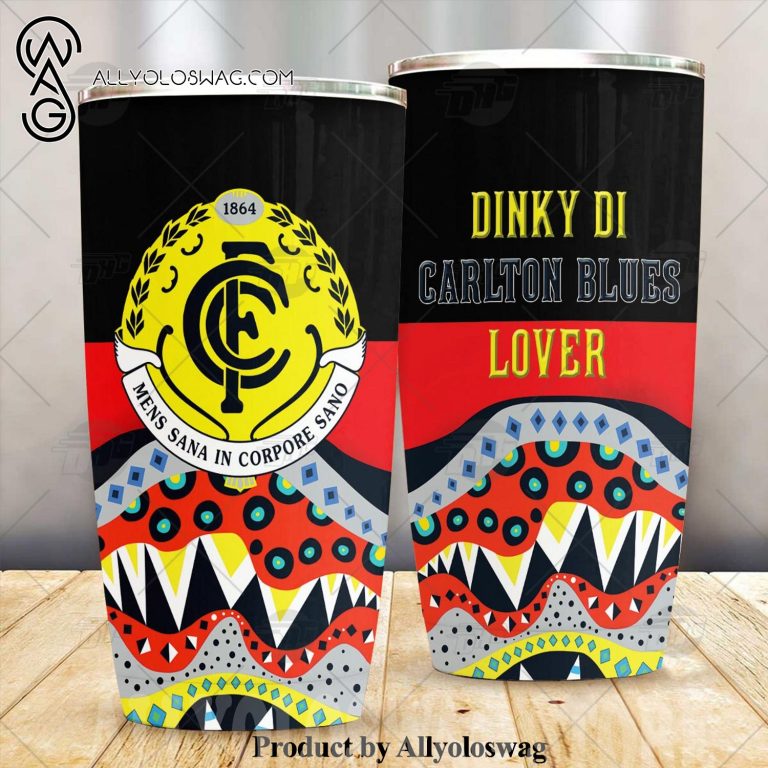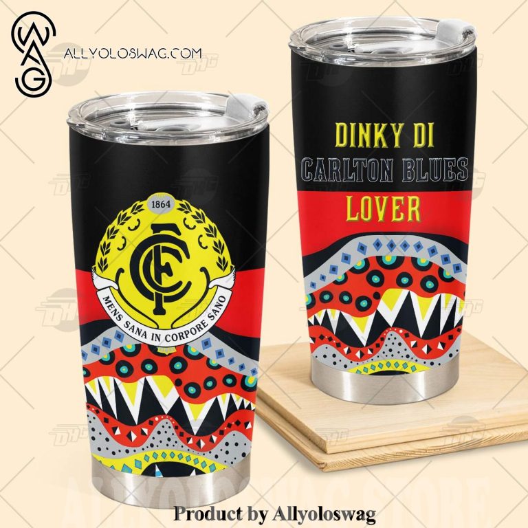 NOTE: [Top-selling] AFL Dinky Di Carlton Blues Lover Aboriginal Flag x Indigenous Stainless Steel Tumbler 20oz 30oz