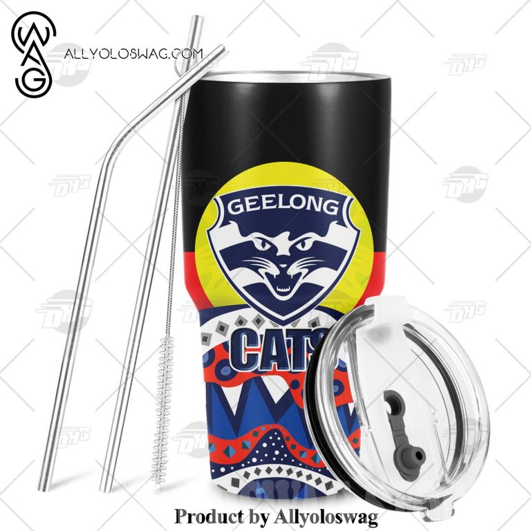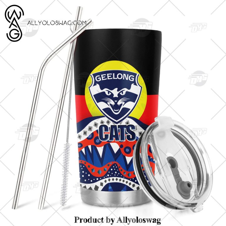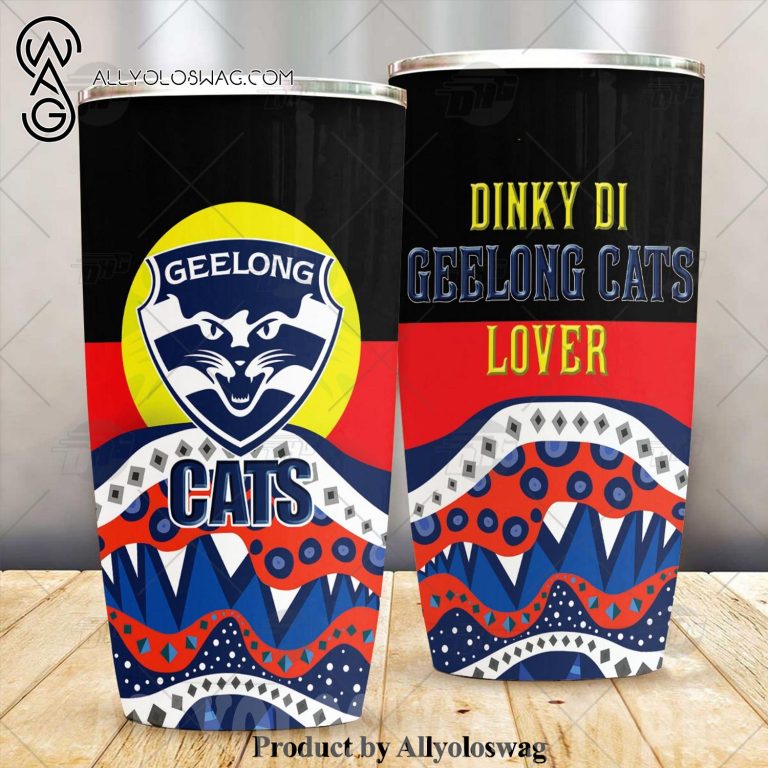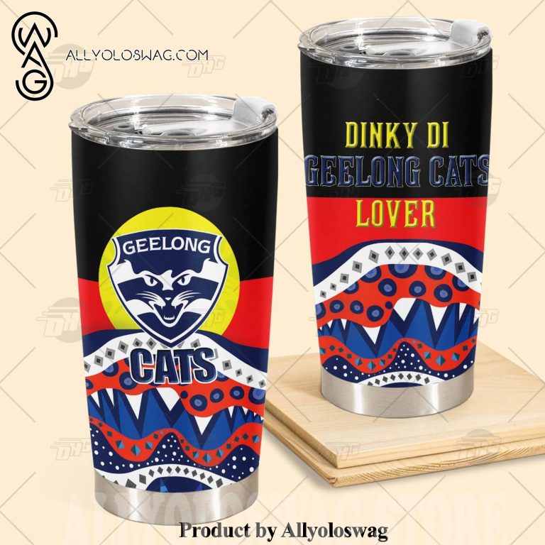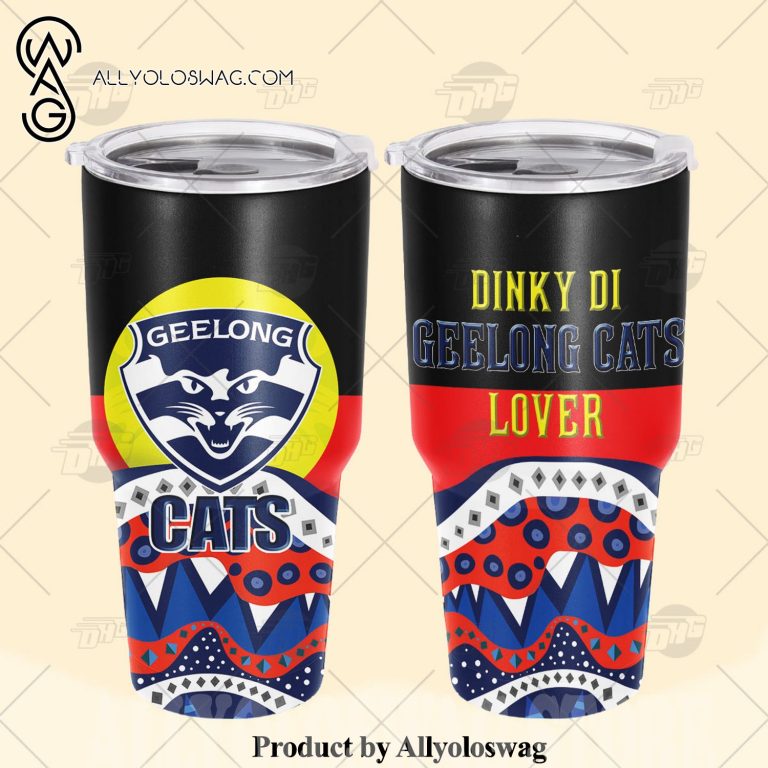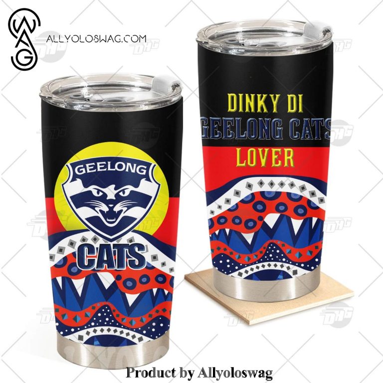 [Top-selling] AFL Dinky Di Geelong Cats Lover Aboriginal Flag x Indigenous Stainless Steel Tumbler 20oz 30oz