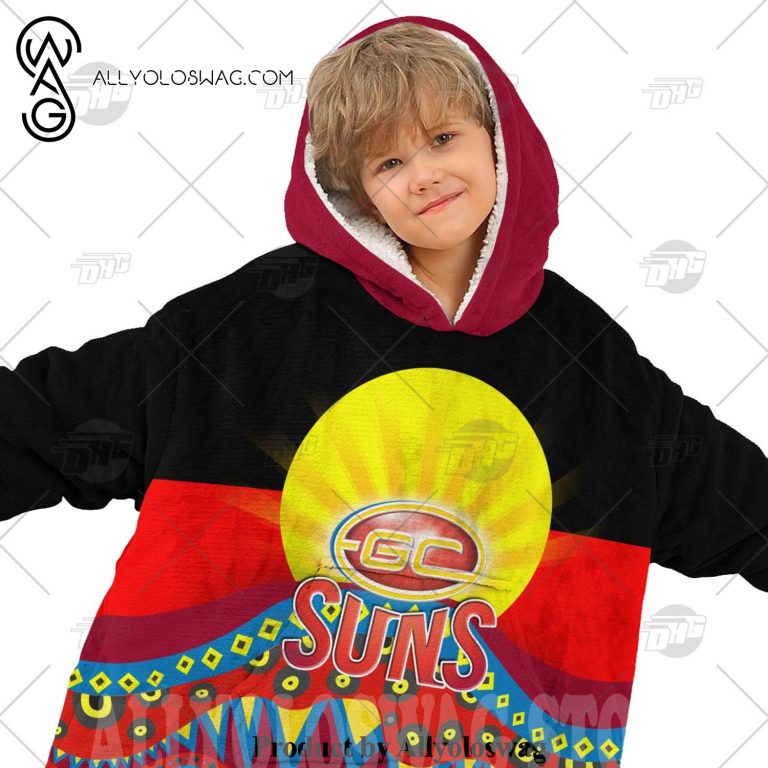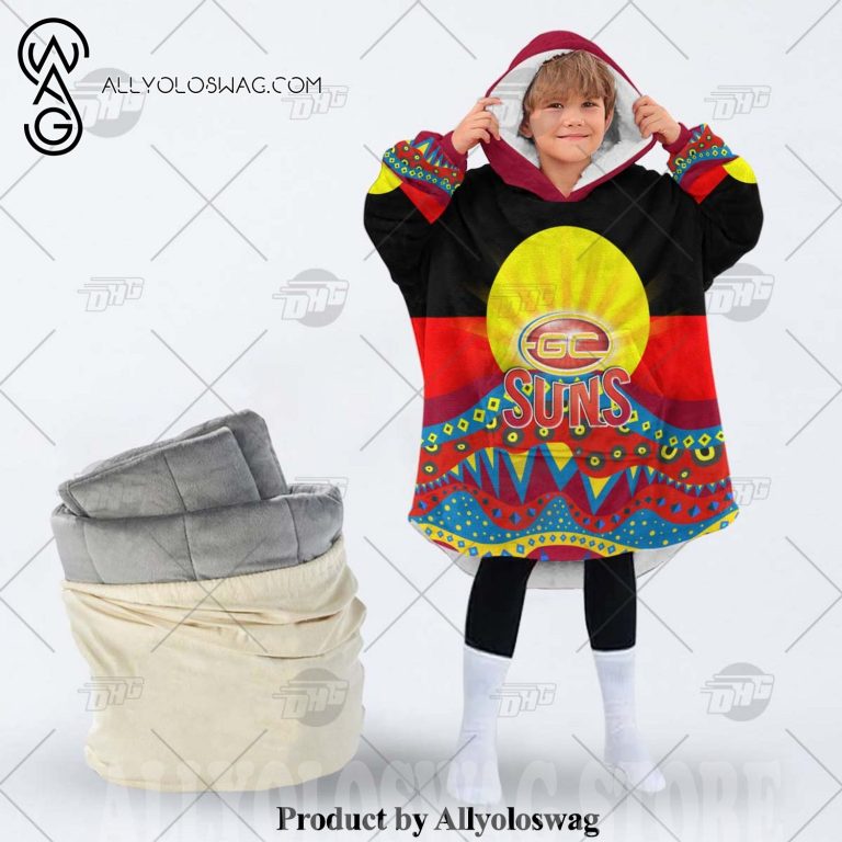 Best hoodies with blankets for hibernating in winter [Top-selling] AFL Dinky Di Gold Coast Suns Football Club Lover Aboriginal Flag x Indigenous Hoodie Blanket
