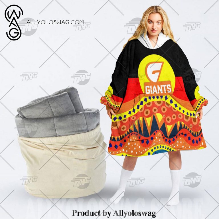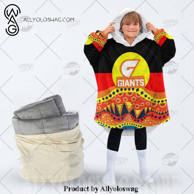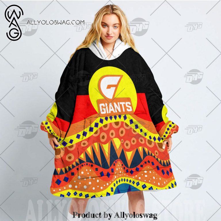 Best hoodies with blankets for hibernating in winter [Top-selling] AFL Dinky Di Greater Western Sydney Giants Lover Aboriginal Flag x Indigenous Hoodie Blanket