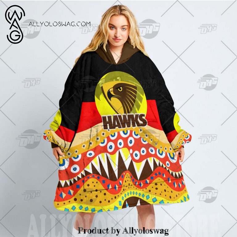 Hooded Sweater Product Description [Top-selling] AFL Dinky Di Hawthorn Football Club Lover Aboriginal Flag x Indigenous Hoodie Blanket