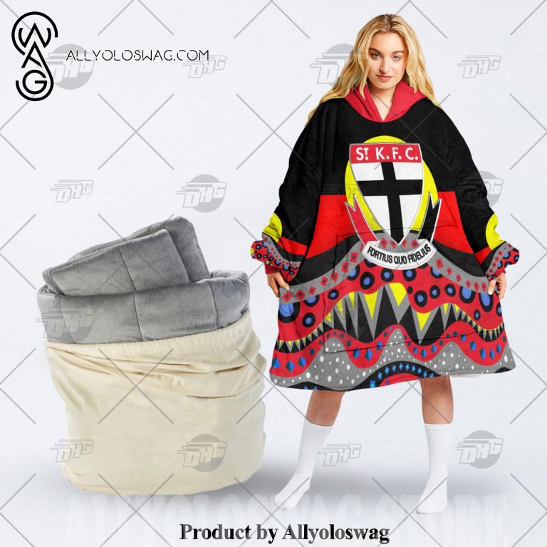 [Top-selling] AFL Dinky Di St Kilda Football Club Lover Aboriginal Flag x Indigenous Hoodie Blanket
