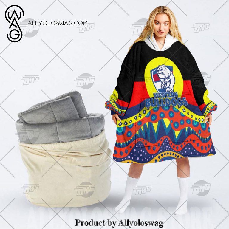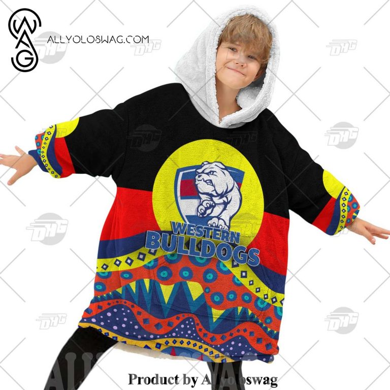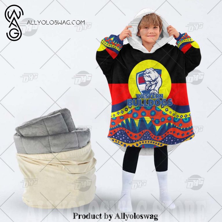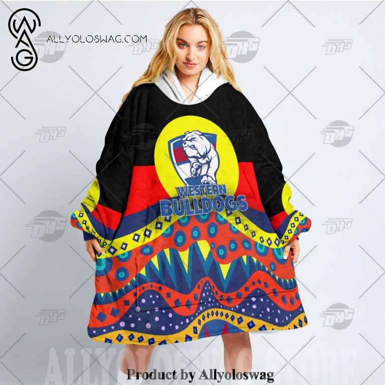 Best hoodies with blankets for hibernating in winter [Top-selling] AFL Dinky Di Western Bulldogs Lover Aboriginal Flag x Indigenous Hoodie Blanket