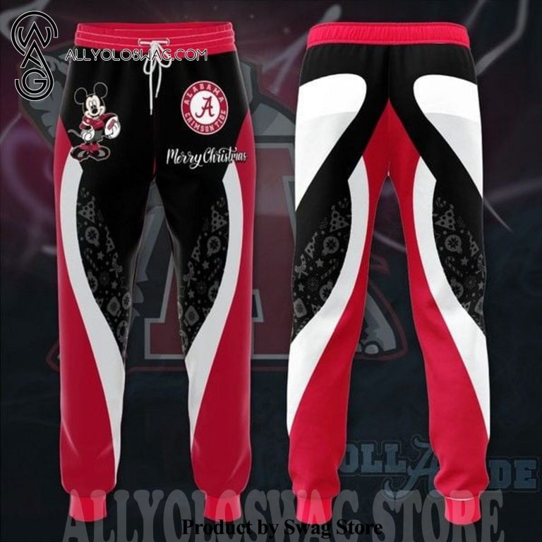 NOTE: [Top-selling] Alabama Crimson Tide Mickey Mouse Full Printing Casual Unisex Sweatpants – Black Red