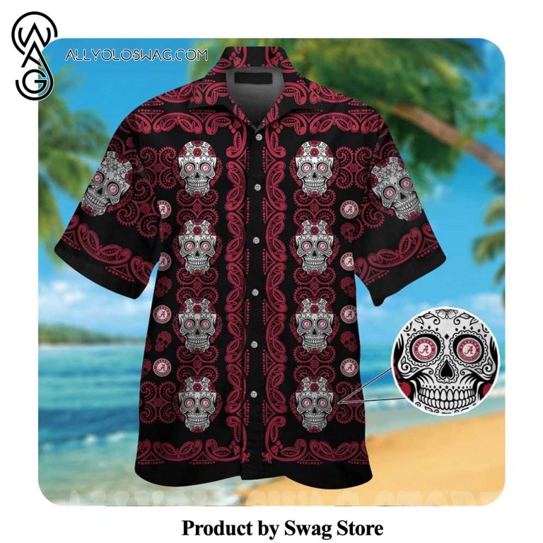 [Top-selling] Alabama Crimson Tide Skull Autumn Best Outfit 3D Hawaiian Shirt was hand-tailored in the early days of fashion. This might happen in the comfort of one’s own home or at a custom tailor’s business. These stores immediately sprang up all across the islands, especially in plantation towns and Honolulu. Newly accessible fabrics from throughout the world were sold at dry goods stores, including printed silk from Japan, raw silk, batik, and rayon from the United States mainland, and cotton cloth for kimonos and yukatas.Hawaiian history had long been shaped by Asian immigrants, and apparel designs reflected this. Short- and long-sleeved shirts, as well as women’s skirts, were created using pre-printed textiles from China and Japan and were based on Asian clothing styles. These bright blouses and dresses were the forerunners of today’s Aloha attire. On the islands, we say “ono” to describe something that is pleasantly cool.