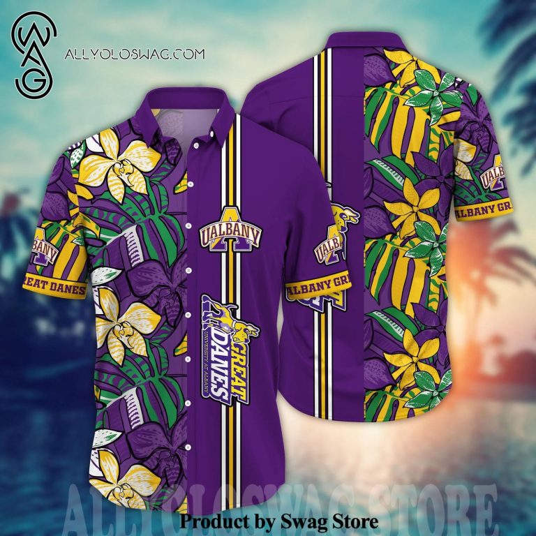 Some details about our product [Top-selling] Albany Great Danes NCAA Floral Tropical Unisex Full Printed Hawaiian Shirt