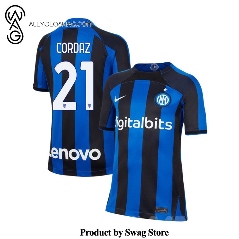 Some details about our product [Top-selling] Alex Cordaz 21 Inter Milan 2022-23 Home 3D Unisex Jersey – Youth Black Blue