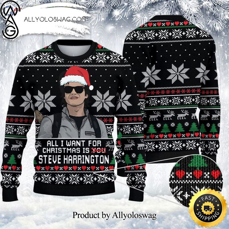 Some details about our [Top-selling] All I Want For Christmas Is Steve Harrington 3D Printed Ugly Christmas Sweater