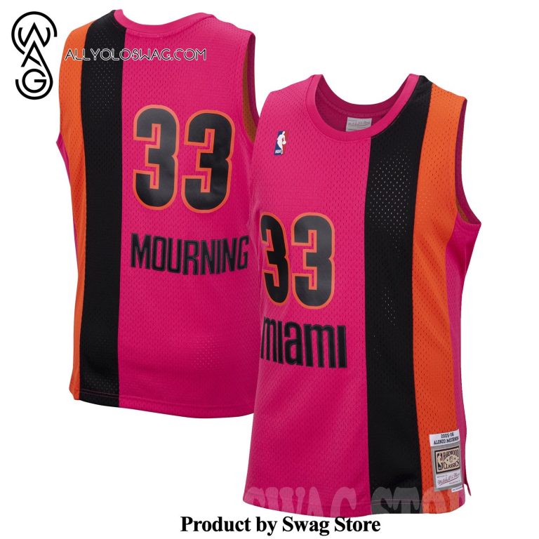 NOTE: [Top-selling] Alonzo Mourning Miami Heat Mitchell And Ness 2005-06 Hardwood Classics Reload Swingman 3D Unisex Jersey – Pink 3D Unisex Jersey