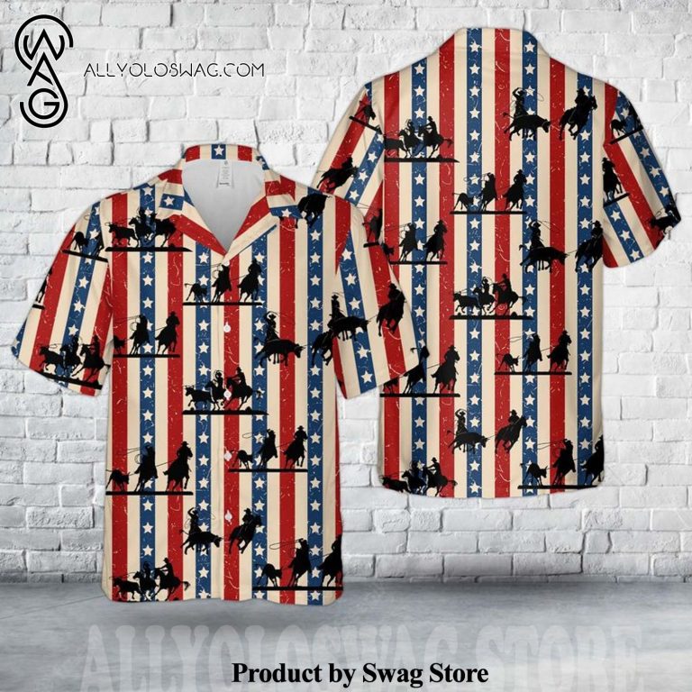 [Top-selling] America Team Roping All Over Print Summer Sets Hawaiian Shirt