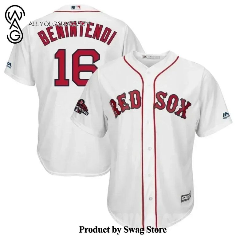 NOTE: [Top-selling] Andrew Benintendi Boston Red Sox 2018 World Series Champions Team Logo Player 3D Unisex Jersey – White