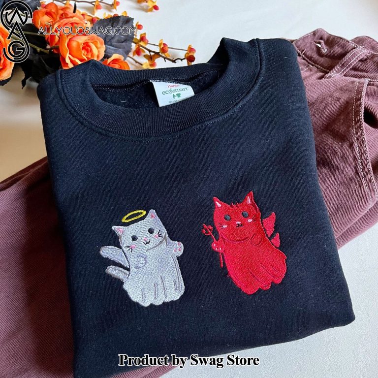 Product description information [Top-selling] Angel and Devil Kitty Embroidered Crewneck, Cat Crewneck