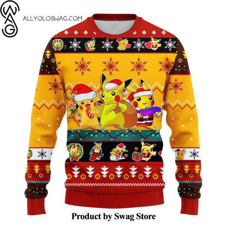 Some details about our [Top-selling] Anime 3 Pikachu Christmas Gifts Pokemon Xmas Ugly Christmas Sweater