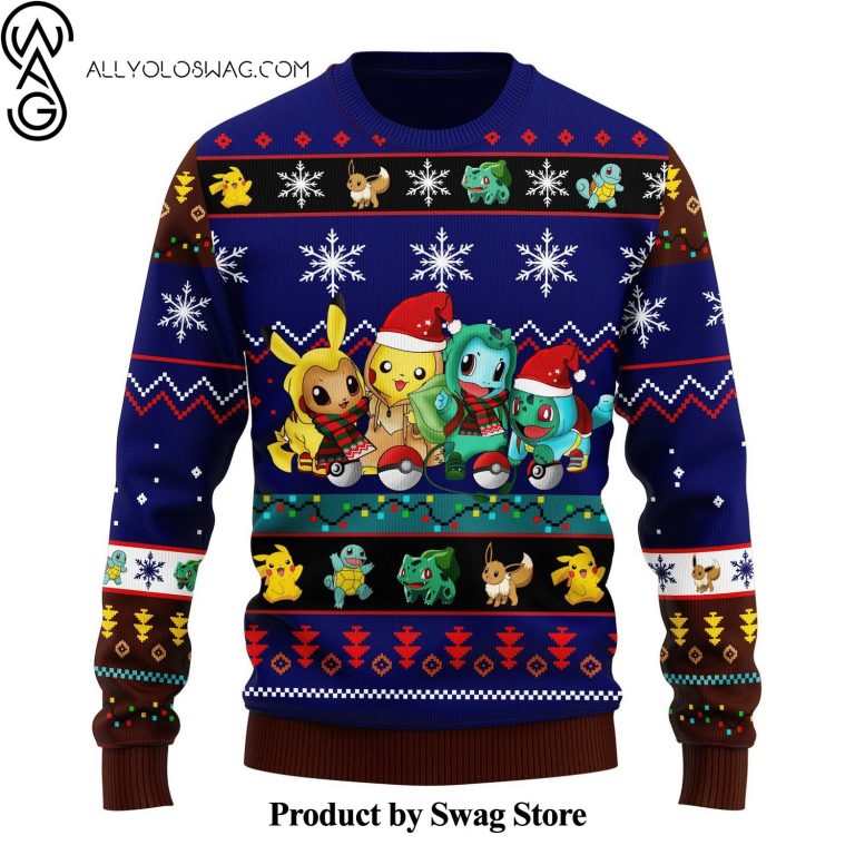 Some details about our [Top-selling] Anime Cute 4 Pokemon Gifts Ugly Christmas Sweater