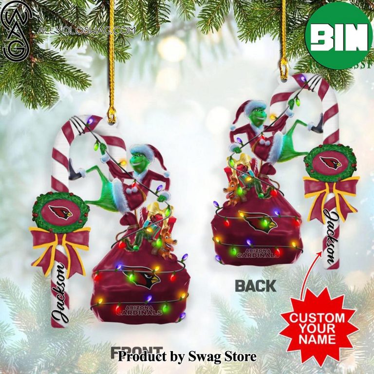 NOTE: [Top-selling] Arizona Cardinals NFL Custom Name Grinch Candy Cane Christmas Tree Ornament
