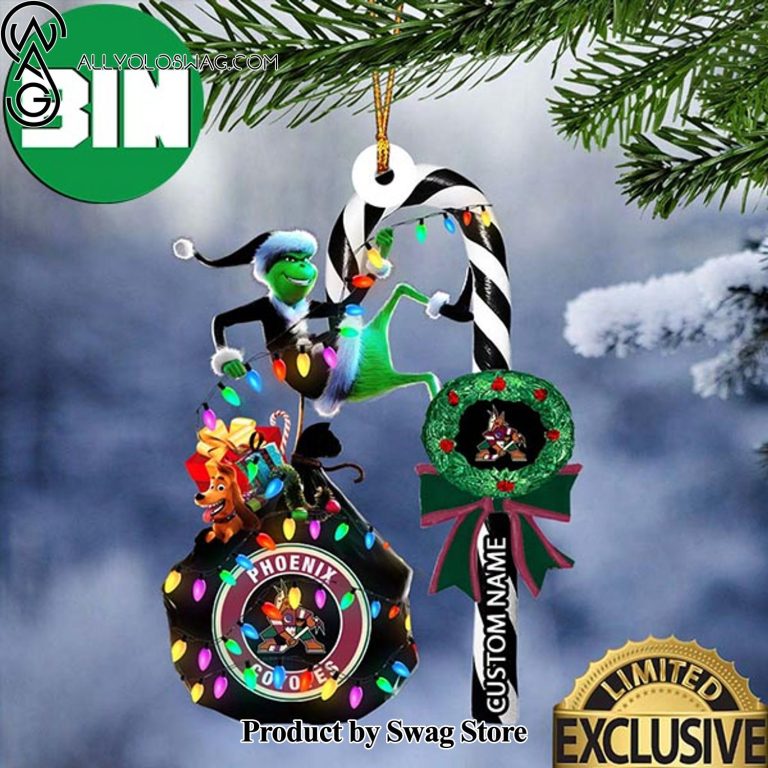 NOTE: [Top-selling] Arizona Coyotes NHL Grinch Candy Cane Custom Name Christmas Tree Ornament