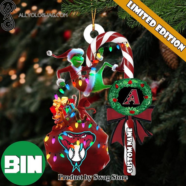 NOTE: [Top-selling] Arizona Diamondbacks MLB Custom Name Grinch Candy Cane Christmas Tree Ornament