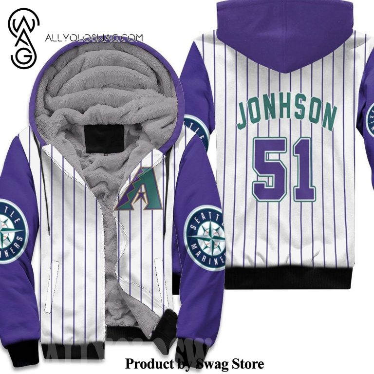 5 ways to flaunt your fleece clothing: how to wear [Top-selling] Arizona Diamondbacks Randy Johnson 51 MLB White Purple Inspired Full Printing Fleece Hoodie