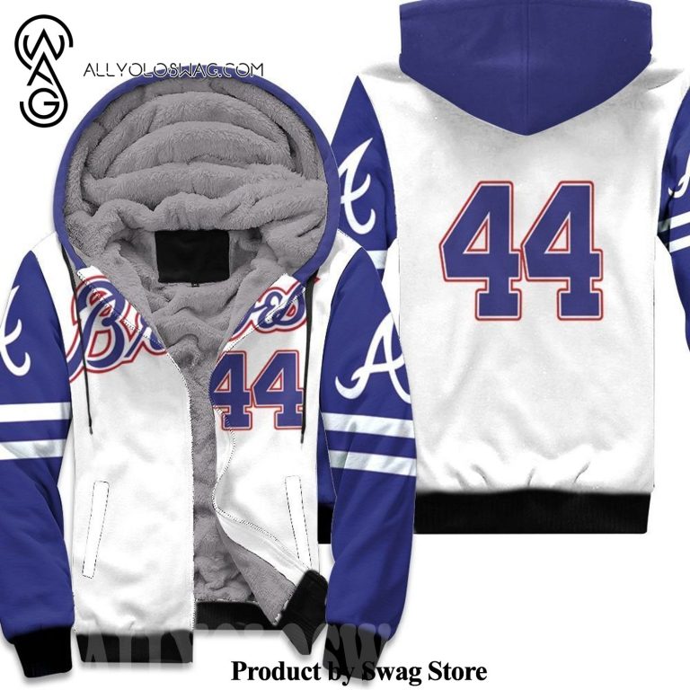NOTE: [Top-selling] Atlanta Braves Hank Aaron 44 MLB White And Blue For Fans Fleece Hoodie