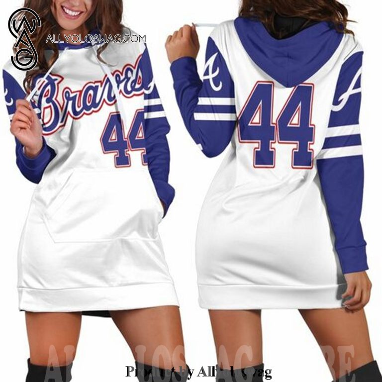 Three Outfit Ideas For A Hoodie Dress [Top-selling] Atlanta Braves Hank Aaron 44 MLB White And Blue Hypebeast Fashion Hoodie Dress