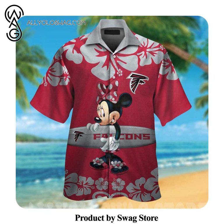 [Top-selling] Atlanta Falcons And Minnie Mouse Full Printing Hawaiian Shirt was hand-tailored in the early days of fashion. This might happen in the comfort of one’s own home or at a custom tailor’s business. These stores immediately sprang up all across the islands, especially in plantation towns and Honolulu. Newly accessible fabrics from throughout the world were sold at dry goods stores, including printed silk from Japan, raw silk, batik, and rayon from the United States mainland, and cotton cloth for kimonos and yukatas.Hawaiian history had long been shaped by Asian immigrants, and apparel designs reflected this. Short- and long-sleeved shirts, as well as women’s skirts, were created using pre-printed textiles from China and Japan and were based on Asian clothing styles. These bright blouses and dresses were the forerunners of today’s Aloha attire. On the islands, we say “ono” to describe something that is pleasantly cool.
