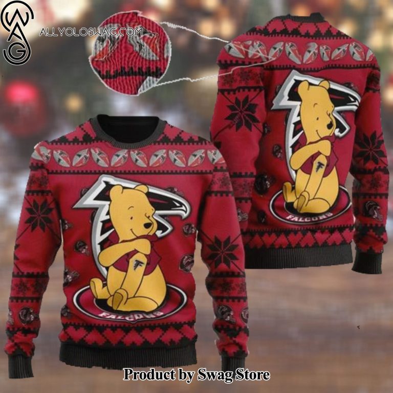 Some details about our [Top-selling] Atlanta Falcons NFL American Football Team Logo Cute Winnie The Pooh Bear 3D Ugly Christmas Sweater Shirt For Men And Women On Xmas