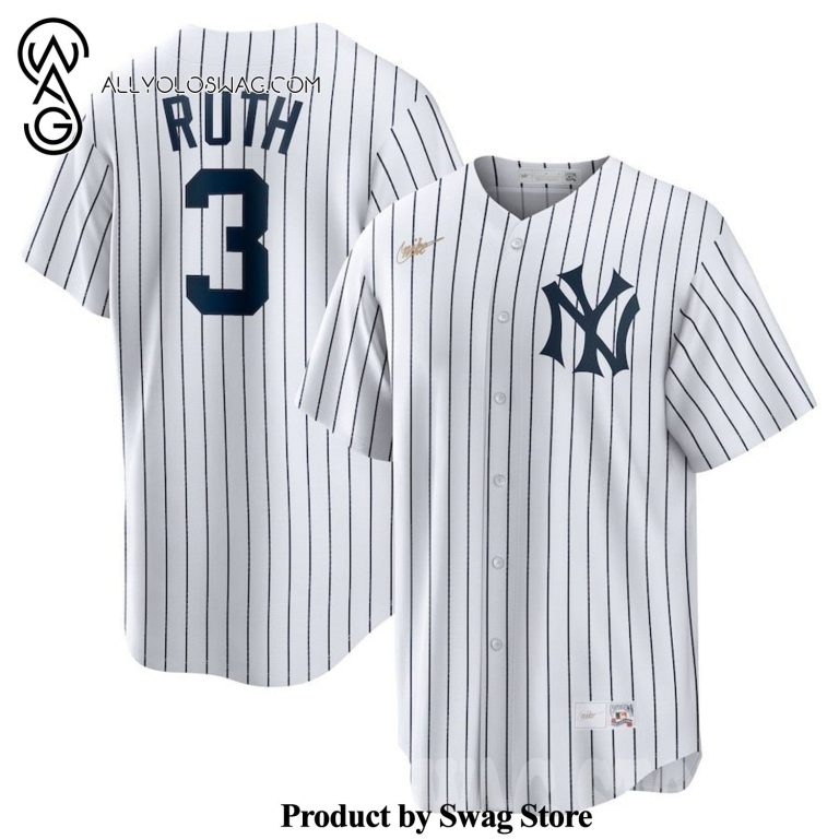 NOTE: [Top-selling] Babe Ruth 3 New York Yankees Home Cooperstown Collection Player 3D Unisex Jersey – White