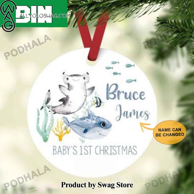 NOTE: [Top-selling] Baby Shark 1st Christmas Pine Tree Personalized Family Christmas Tree Ornament