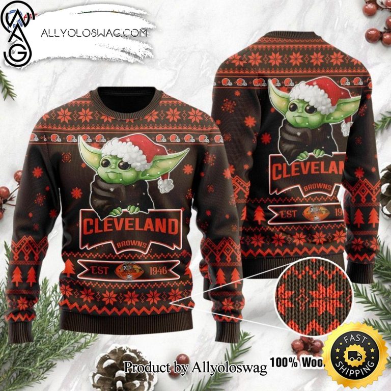 NOTE: [Top-selling] Baby Yoda Grogu Cleveland Browns Ugly Christmas Wool Knitted Sweater