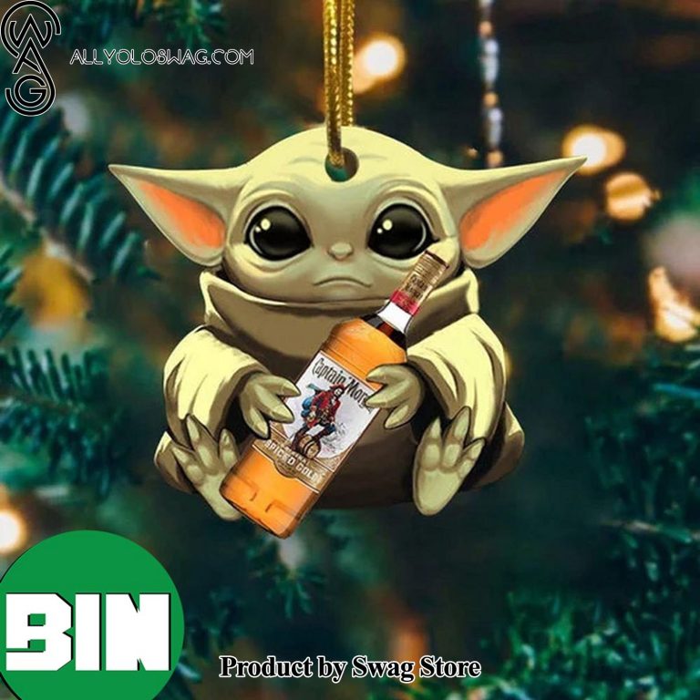 NOTE: [Top-selling] Baby Yoda Hug Captain Morgan For Whiskey Lovers Star Wars Christmas Tree Ornament