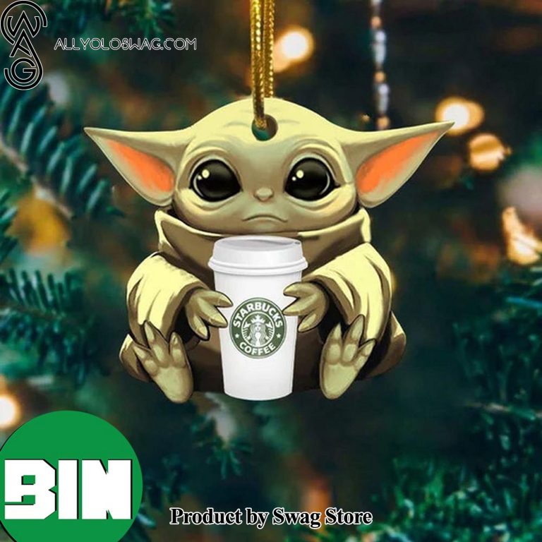 NOTE: [Top-selling] Baby Yoda Hug Starbuck Coffee For Drink Lovers Star Wars Christmas Tree Ornament