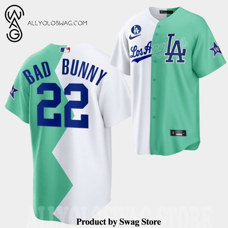 NOTE: [Top-selling] Bad Bunny 2022-23 All-Star Celebrity Softball Game 22 Los Angeles Dodgers White Green 3D Unisex Jersey