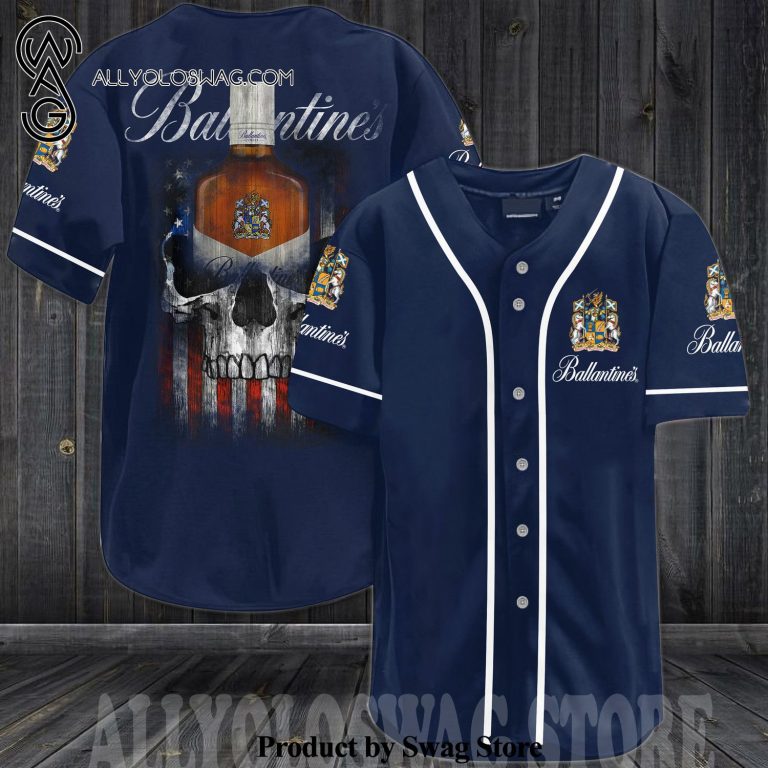 9 Effortlessly Cool Baseball Jersey Outfit Ideas [Top-selling] Ballantines Whiskey USA Flag Skull All Over Print Unisex Baseball Jersey – Navy