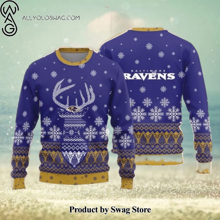 [Top-selling] Baltimore Ravens Christmas Big Reindeer Pattern Christmas Gift 3D Ugly Christmas Sweater
