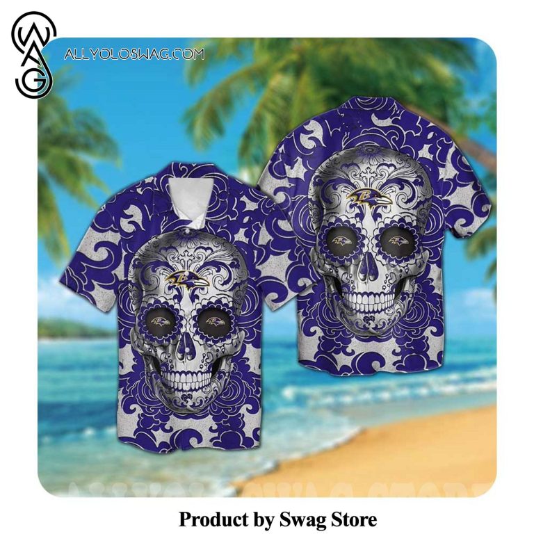 [Top-selling] Baltimore Ravens Sugar Skull Hot Fashion 3D Hawaiian Shirt was hand-tailored in the early days of fashion. This might happen in the comfort of one’s own home or at a custom tailor’s business. These stores immediately sprang up all across the islands, especially in plantation towns and Honolulu. Newly accessible fabrics from throughout the world were sold at dry goods stores, including printed silk from Japan, raw silk, batik, and rayon from the United States mainland, and cotton cloth for kimonos and yukatas.Hawaiian history had long been shaped by Asian immigrants, and apparel designs reflected this. Short- and long-sleeved shirts, as well as women’s skirts, were created using pre-printed textiles from China and Japan and were based on Asian clothing styles. These bright blouses and dresses were the forerunners of today’s Aloha attire. On the islands, we say “ono” to describe something that is pleasantly cool.