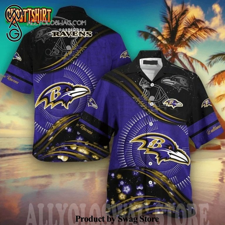[Top-selling] Baltimore Ravens Summer Set Hawaiian Shirt Ultra style for summer was hand-tailored in the early days of fashion. This might happen in the comfort of one’s own home or at a custom tailor’s business. These stores immediately sprang up all across the islands, especially in plantation towns and Honolulu. Newly accessible fabrics from throughout the world were sold at dry goods stores, including printed silk from Japan, raw silk, batik, and rayon from the United States mainland, and cotton cloth for kimonos and yukatas.Hawaiian history had long been shaped by Asian immigrants, and apparel designs reflected this. Short- and long-sleeved shirts, as well as women’s skirts, were created using pre-printed textiles from China and Japan and were based on Asian clothing styles. These bright blouses and dresses were the forerunners of today’s Aloha attire. On the islands, we say “ono” to describe something that is pleasantly cool.