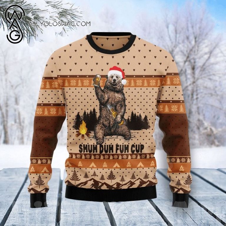 NOTE: [Top-selling] Bear Camping Christmas Shuh Duh Fuh Cup Knitting Pattern Ugly Christmas Sweater