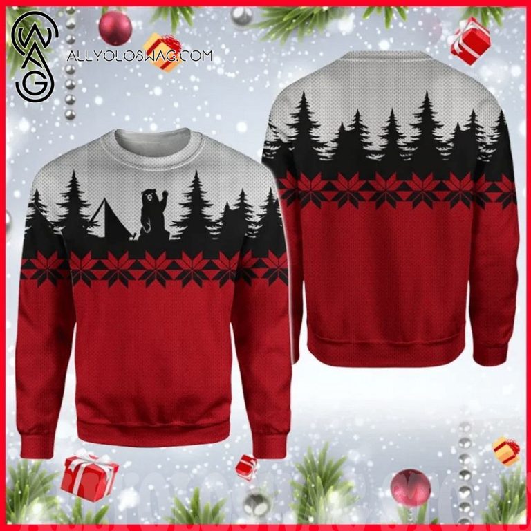 NOTE: [Top-selling] Bear Dark Silhouettes Camping Knitting Pattern Ugly Christmas Sweater