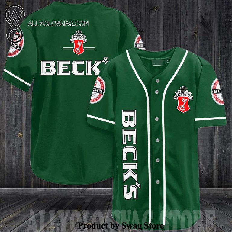 9 Effortlessly Cool Baseball Jersey Outfit Ideas [Top-selling] Beck’s Beer All Over Printed Unisex Baseball Jersey – Green