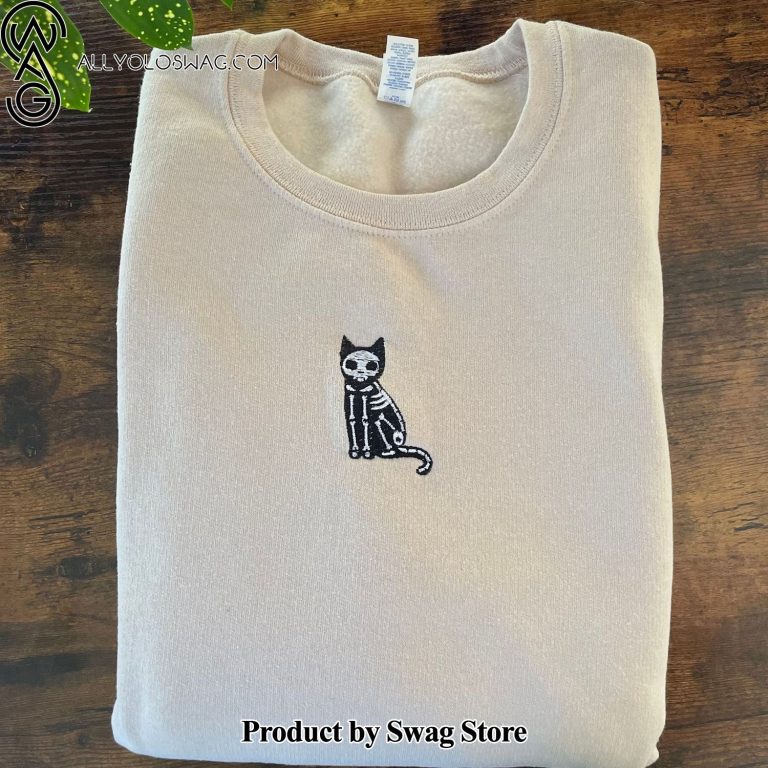 Product description information [Top-selling] Black Cat Skeleton Embroidered Sweatshirt, Halloween Embroidered Sweatshirt