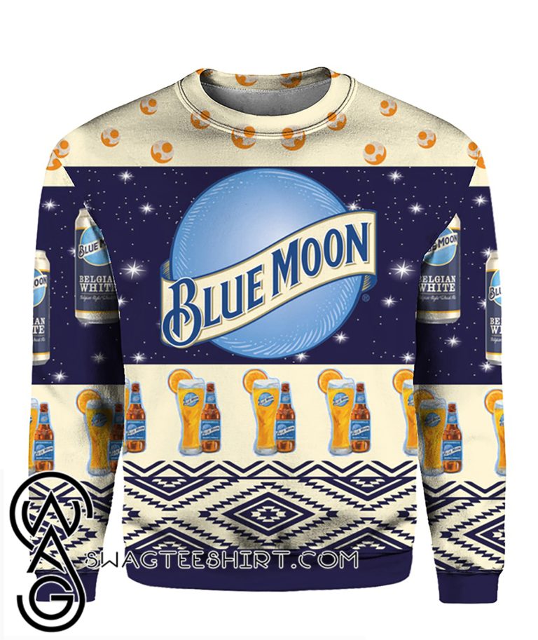 NOTE: [Top-selling] Blue moon belgian white beer full printing ugly christmas sweater