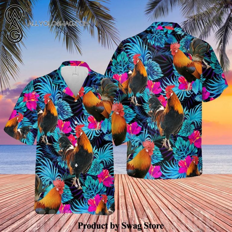 Some details about our product [Top-selling] Bobsgardens Chicken Neon Tropical Hawaii S Full Printed 3D Hawaiian Shirt