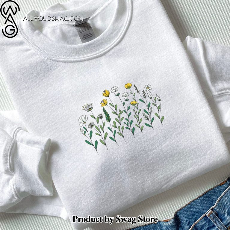 [Top-selling] Boho Floral Unisex Embroidered Sweatshirt, Plant Women’s Minimalist Flower Sweater