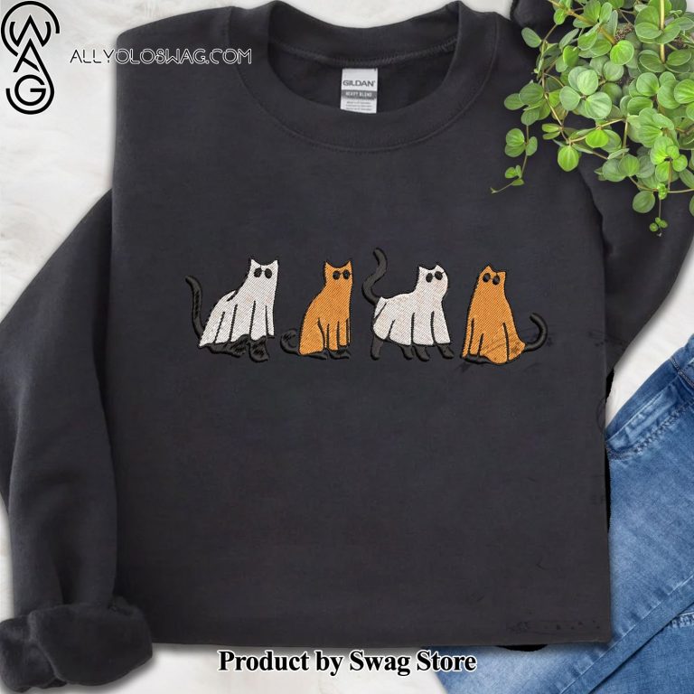 NOTE: [Top-selling] Boo Cats Cats Ghost Embroidered Sweatshirt, Halloween Embroidered Sweatshirt