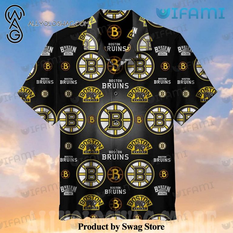 [Top-selling] Boston Bruins Black Logo Pattern Bruins Gift Hawaiian Shirt was hand-tailored in the early days of fashion. This might happen in the comfort of one’s own home or at a custom tailor’s business. These stores immediately sprang up all across the islands, especially in plantation towns and Honolulu. Newly accessible fabrics from throughout the world were sold at dry goods stores, including printed silk from Japan, raw silk, batik, and rayon from the United States mainland, and cotton cloth for kimonos and yukatas.Hawaiian history had long been shaped by Asian immigrants, and apparel designs reflected this. Short- and long-sleeved shirts, as well as women’s skirts, were created using pre-printed textiles from China and Japan and were based on Asian clothing styles. These bright blouses and dresses were the forerunners of today’s Aloha attire. On the islands, we say “ono” to describe something that is pleasantly cool.