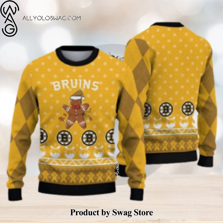 Some details about our [Top-selling] Boston Bruins Christmas Gingerbread Man Ugly Christmas Sweater Cute Christmas Gift