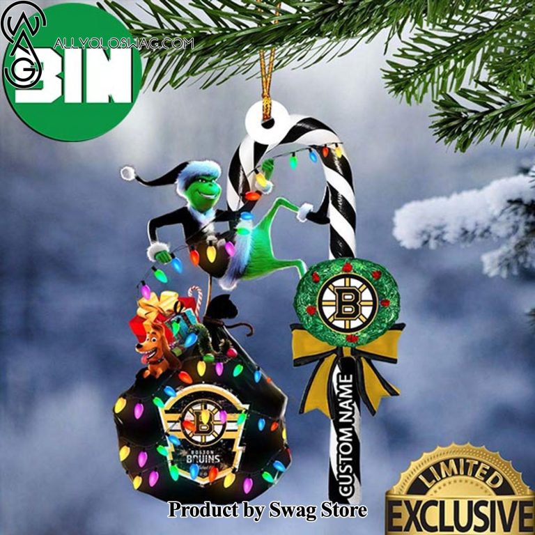 NOTE: [Top-selling] Boston Bruins NHL Grinch Candy Cane Custom Name Christmas Tree Ornament