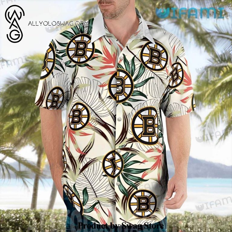 [Top-selling] Boston Bruins Palm Leaf Logo Pattern Bruins Gift Hawaiian Shirt